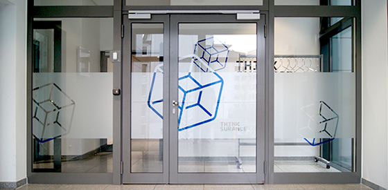 Conceptual advertising technology for holistic office branding. Again we were able to accompany a company in Frankfurt am Main as an experienced partner for signage, lettering and branding on the way to its new office space.
